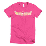 The American Apparel t-shirt is the smoothest and softest t-shirt you'll ever wear. Made of fine jersey, it has a durable, vintage feel. These classic-cut shirts are known for their premium quality, as well as ability to stand up to a washing machine (will maintain size and color after many washes). The shirts are 100% fine jersey cotton, except for the heather grey color (90% cotton, 10% polyester). This women's t-shirt is made form-fitting to flatter a woman's curves.