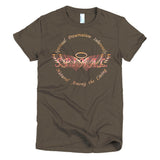 The American Apparel t-shirt is the smoothest and softest t-shirt you'll ever wear. Made of fine jersey, it has a durable, vintage feel. These classic-cut shirts are known for their premium quality, as well as ability to stand up to a washing machine (will maintain size and color after many washes). The shirts are 100% fine jersey cotton, except for the heather grey color (90% cotton, 10% polyester). This women's t-shirt is made form-fitting to flatter a woman's curves.