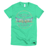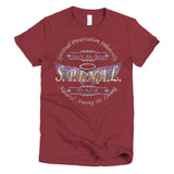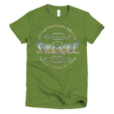 The American Apparel t-shirt is the smoothest and softest t-shirt you'll ever wear. Made of fine jersey, it has a durable, vintage feel. These classic-cut shirts are known for their premium quality, as well as ability to stand up to a washing machine (will maintain size and color after many washes). The shirts are 100% fine jersey cotton, except for the heather grey color (90% cotton, 10% polyester). This women's t-shirt is made form-fitting to flatter a woman's curves.